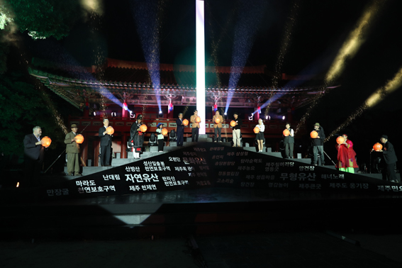행사의 하이라이트로‘유산의 빛’ 밝힘 세리머니가 진행돼 제주 국가유산 방문의 해의 성공을 기원했다. 마지막으로 7인조 퓨전국악 그룹‘도시산조’가 현대적 감각으로 재해석한 제주 국가유산의 가치를 음악으로 표현하며 공연의 대미를 장식했다.
