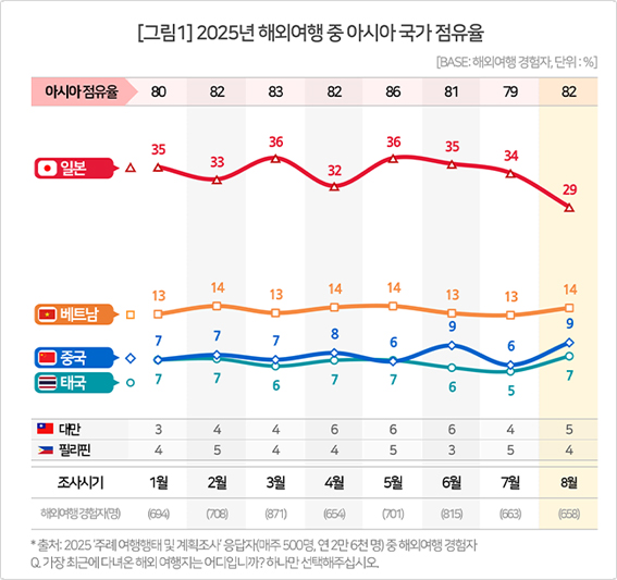 - 해외여행지 점유율, 일본 줄고 중국 늘었다