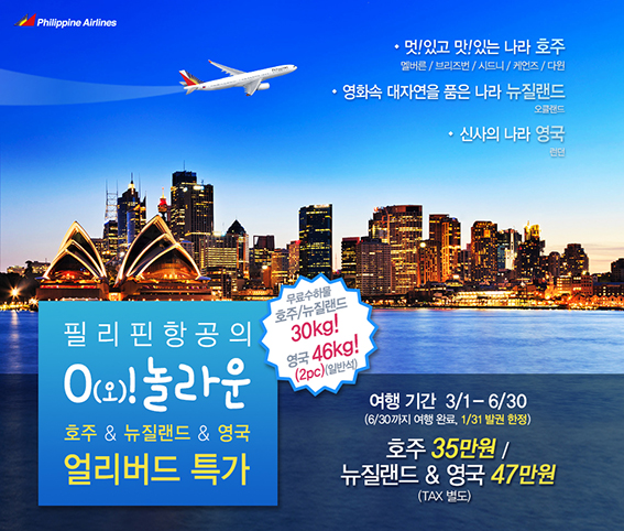 - 필리핀항공, O(오)! 놀라운 호주, 뉴질랜드, 영국 얼리버드 ...