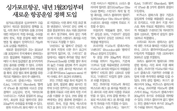 - 싱가포르항공, 내년 1월20일부터 새로운 항공운임 정책 도...