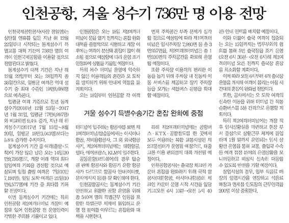 인천국제공항공사(사장 정일영)는 성탄절 ...[제1013호]2018-01-05 11:21