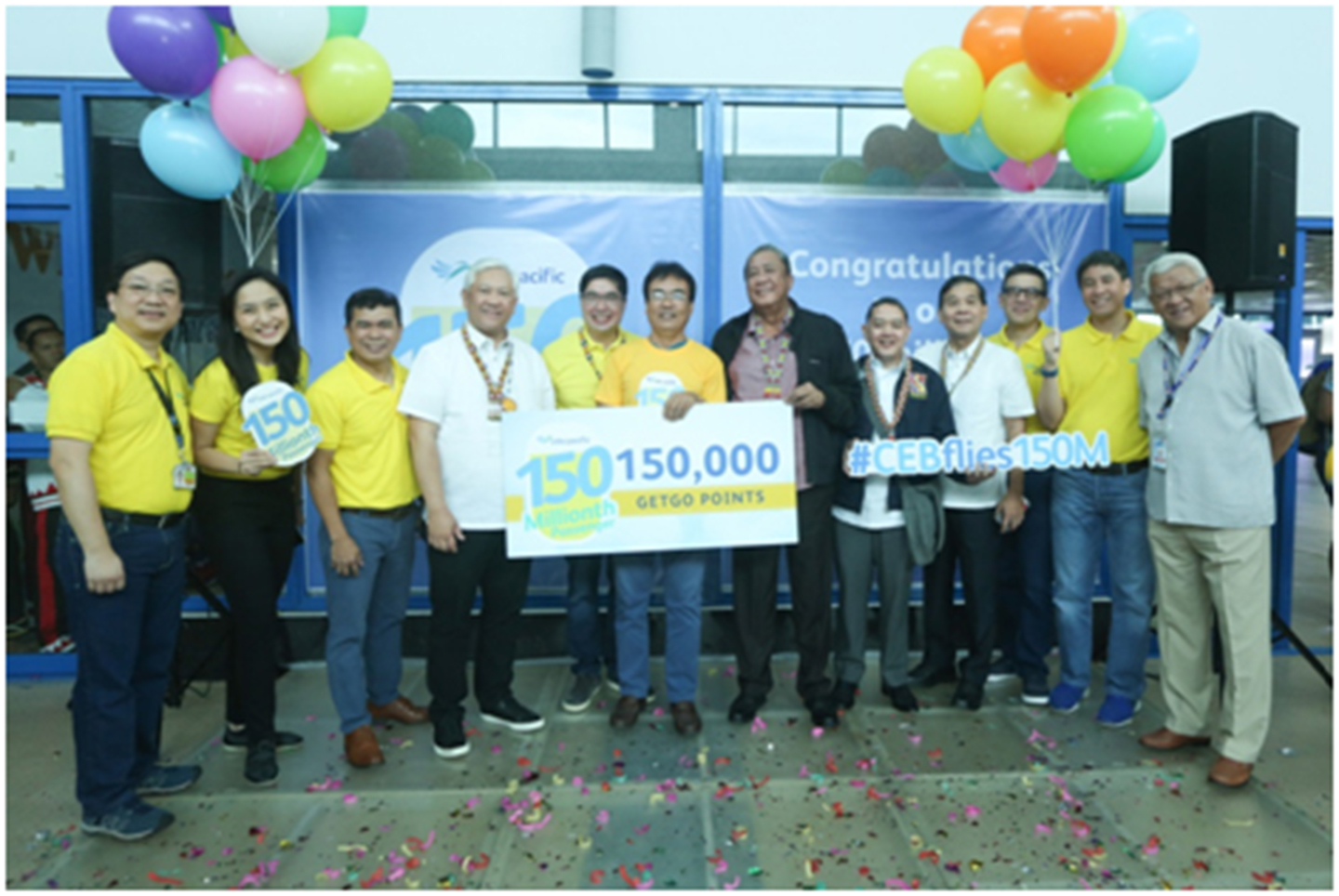 세부 퍼시픽 항공이 1억 5천만번째 탑승객을 축하하고 있다.