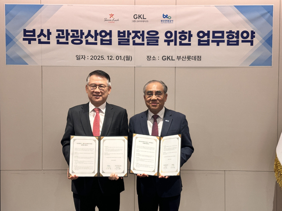 이정실 부산관광공사 사장(오른쪽)과 윤두현 그랜드코리아레저 사장(왼쪽)이 지난 12월 1일 부산 지역관광 활성화 및...[제1297호]2025-12-04 09:43
