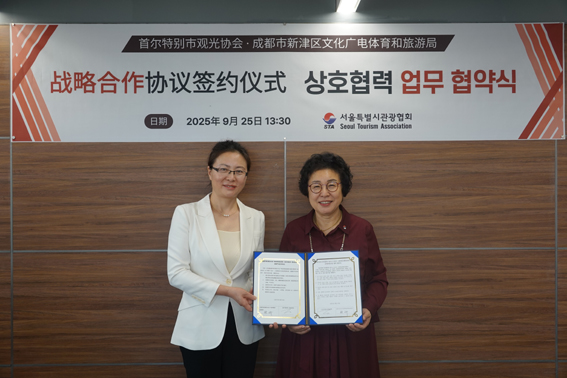 조태숙 서울특별시관광협회 회장(오른쪽)과 시옹 얀 사천성 성도시 신진구 인민정부 당서기(왼쪽)가 지난 9월 25일 서...[제1288호]2025-09-30 14:04