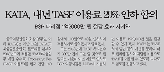 - KATA, 내년 TASF 이용료 29% 인하 합의
