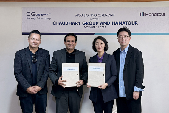 지난 12일 네팔 현지에서 진행한 협약식에서 하나투어 송미선 대표이사(오른쪽에서 두번째)와 차우다리 그룹 너바나 ...[제1299호]2025-12-15 13:02