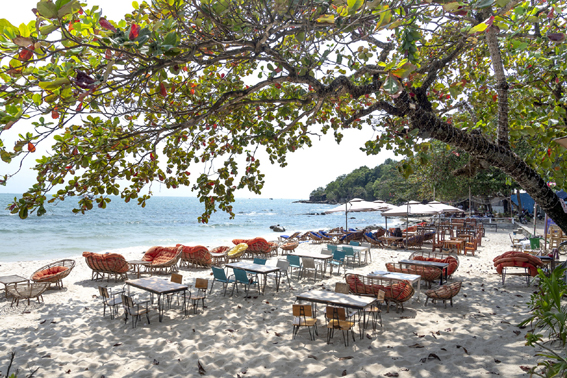 캄보디아 시아누크빌(Sihanoukville) 항구 인근 해변 카페.