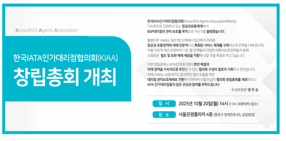 - 10월 20일, 한국IATA인가대리점협의회(KIAA) 창립총회 개...