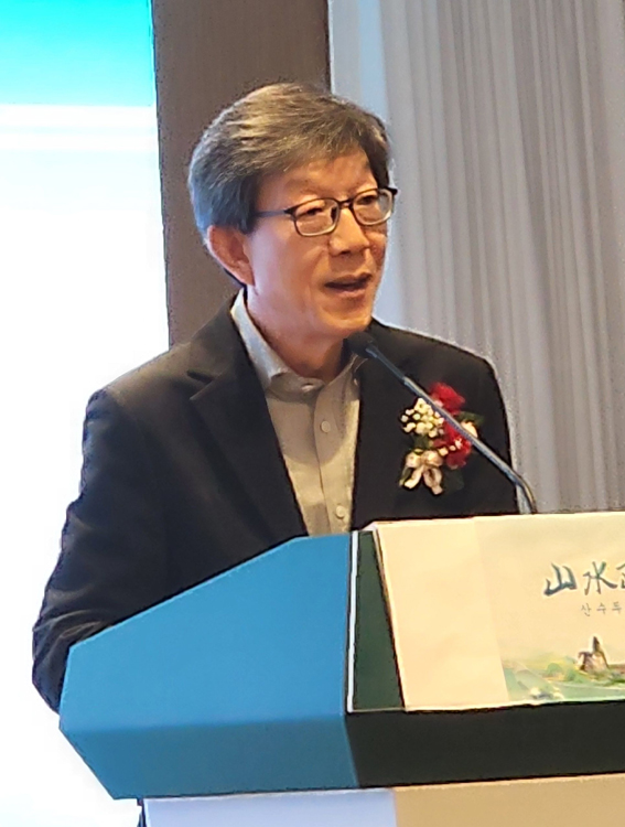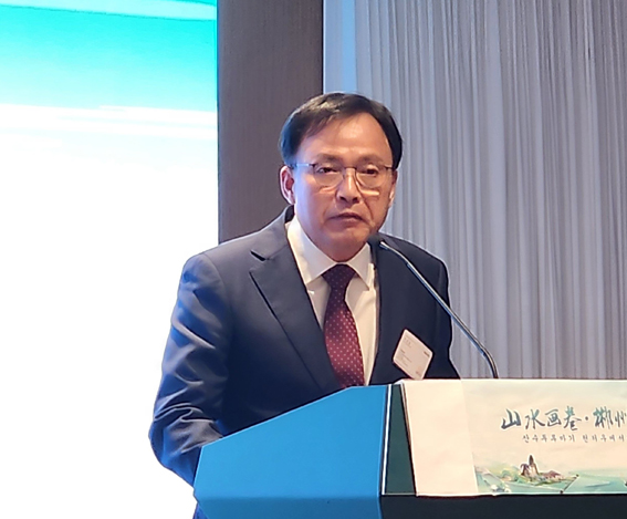박강섭 서울관광재단 이사장이 천저우시 문화관광 설명회에서 축사를 하고 있다.