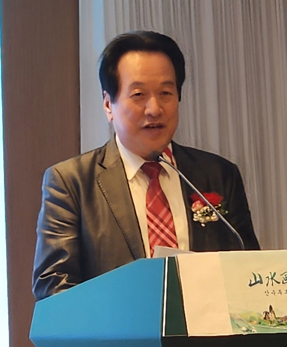 서일석 원코리아투어그룹 회장이 천저우시 문화관광 설명회에서 축사를 하고 있다.
