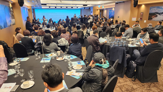 지난 11월 4일 코리아나호텔 2층에서 “산수화첩, 천저우에서 만납시다!”라는 주제로 천저우시 문화관광 설명회에서 저우 하이린 천저우시 부시장의 환영사를 100여명의 참석자들이 경청하고 있다.