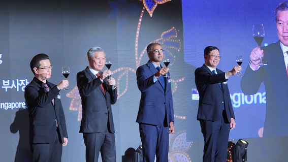 리섹엥 싱가포르항공 북아시아 부사장(왼쪽에서 두 번째)이 건배사를 하고 있다.