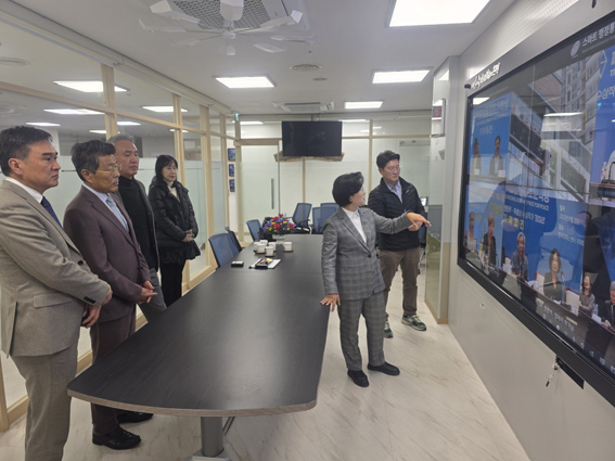 최성무 아트코리아 대표이사, 추신강 KATA 국제협력위원회 위원장, 손서태 서태국제여행사 대표이사(왼쪽부터)가 김미경 은평구청장으로부터 은평구에 대한 소개를 듣고 있다.