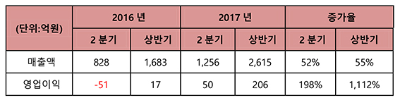 상반기 전년대비1112% 증가한 206억원 놀라운 성장