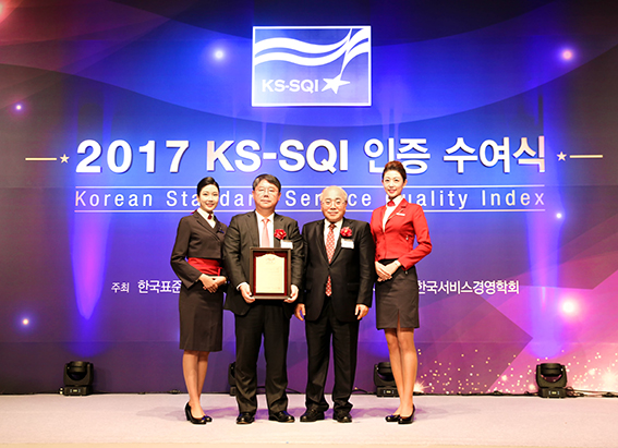 이스타항공은 지난 10월 25일 서울 소공동에 위치한 롯데호텔 크리스탈볼룸에서 2017 KS-SQI 1위 기업 인증 수여식에 참석하여 인증패를 받았다.