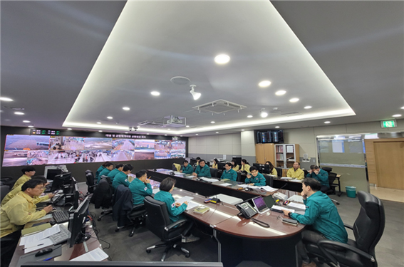 지난 1월 23일 한국공항공사 본사 중앙재난상황실에서 윤형중 한국공항공사 사장 주재로 제주공항 긴급 점검회의가 진행되고 있는 모습.