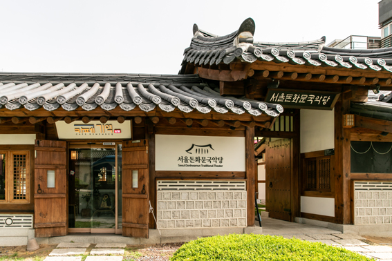 남산골한옥마을에 위치한 서울남산국악당은 국악 전문 공연장으로, 전통 공연예술의 진흥과 국악의 우수성을 알리기 위해 건립되었으며, 1층 한옥 건물과 계단식 정원을 마주보고 있는 지하 1층 공연장 로비가 아름답다.