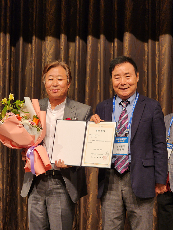 강찬식 선거관리위원장은 이진석 회장 당선자에게 당선증을 수여했다.
