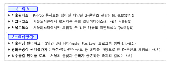 서울스프링페스타, 서울 전역에서 ‘3빅쇼’, ‘3테마공간’ 등 매력적인 콘텐츠 선보일 예정