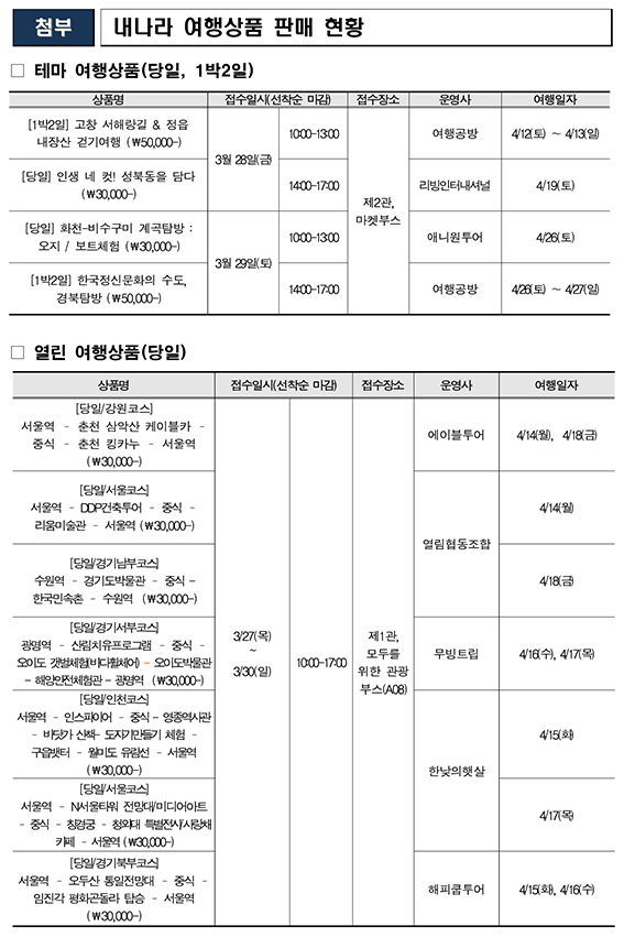 ‘내나라 여행상품’당일 3만 원, 1박 2일 5만 원 박람회장에서 한정 특가