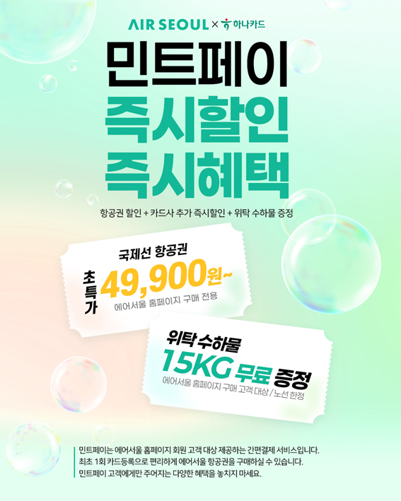 에어서울(대표이사 김중호)이 하나카드와 제휴해 민트페이 프로모션을 시작했다.
