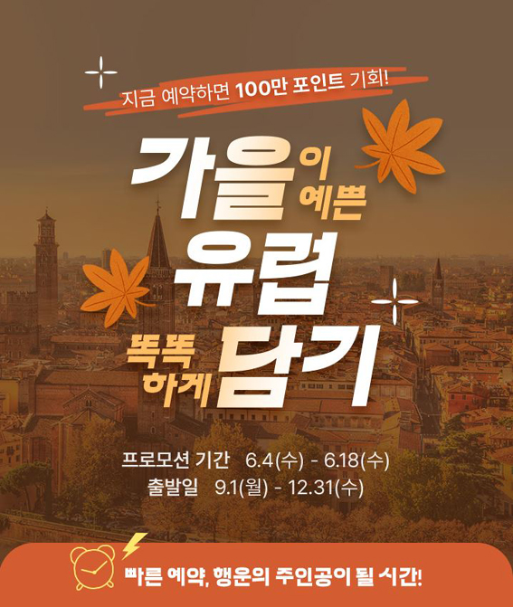 노랑풍선은 유럽 여행의 최적기인 가을 시즌 여행을 계획 중인 고객을 위해 '가을이 예쁜 유럽 똑똑하게 담기' 프로모션을 진행한다고 6월 4일 밝혔다.