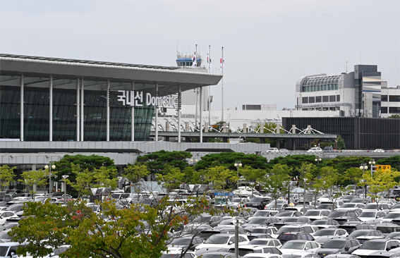 김포공항 청사 및 주차장 모습.