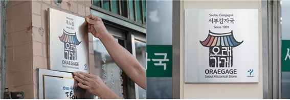 오래가게 현판 부착 사진