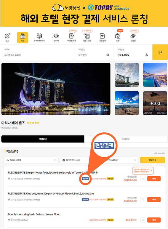 - 노랑풍선-토파스, 국내/해외 현장 결제 가능한 호텔 예약 서...