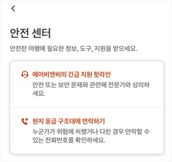 투숙 중 긴급 상황에 처한 호스트와 게스트 위해 원터치로 에어비앤비에 연락 가능한 서비스