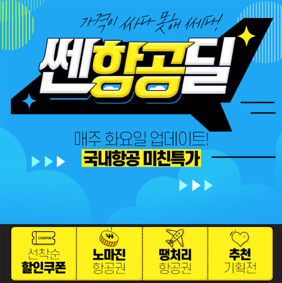 ‘쎈항공딜’ 인기에 국내선 할인항공권 예약 451% 판매 급증