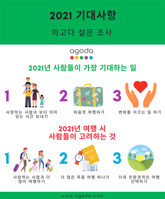 아고다, ‘2021년 기대 사항’ 설문 조사 결과, 마음껏 여행하기 두 번째로 관심