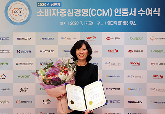 양성회 하나투어 고객경험본부장이 2020년 상반기소비자중심경영(CCM) 인증식에서 5회 연속 CCM 인증서를 받은 후 ...[제1110호]2020-07-21 11:31