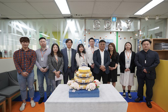장기 근속 포상자들이 창립 20주년 기념식에서 수상 후 기념 촬영을 하고 있다...[제1075호]2019-10-28 15:29