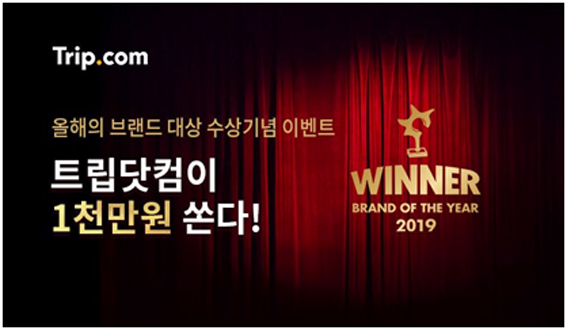 올해의 브랜드 대상 수상 기념, 트립 코인 등 추첨 통해 경품 증...[제1071호]2019-10-02 12:48