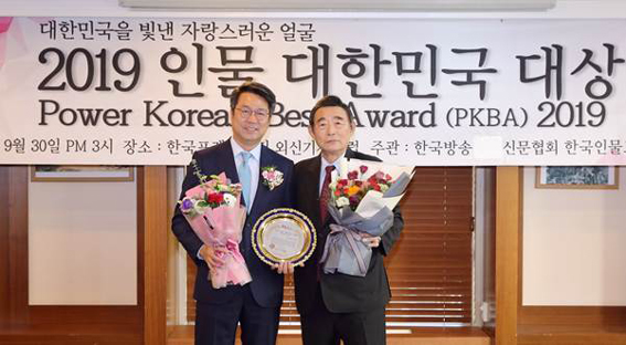 2019 인물 대한민국 대상 시상식에 참석한 롯데관광개발 백현 대표이사 사장(왼쪽)과 한국방송신문협회 이보길 회...[제1071호]2019-10-02 12:12
