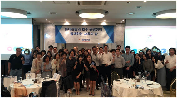 롯데관광과 호주관광청이 함께 한 교육의 밤 행사에 참석한 관계자들이 기념사진을 촬영하고 있다.