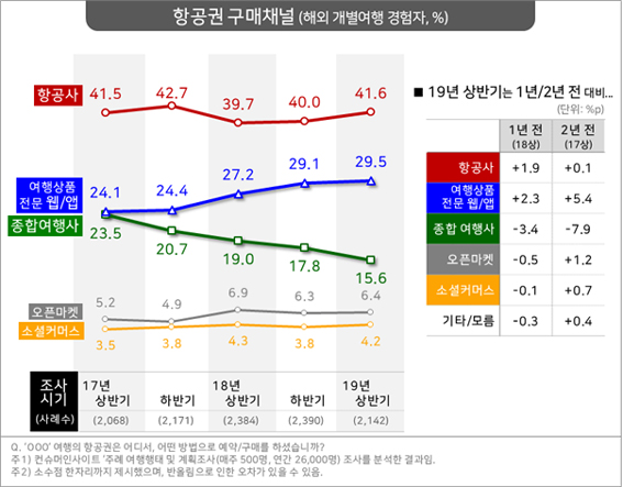 항공사 직접 구매 비율 상반기 41.6%로 1위 차지