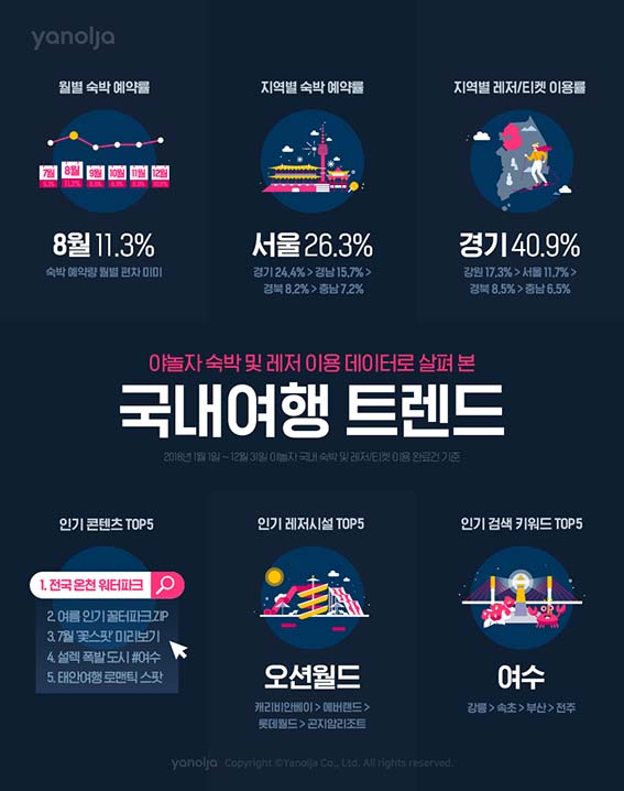야놀자 국내여행 트렌드 분석 공개, 숙박/레저 수도권 예약 비중 높아