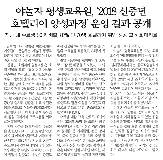 - 야놀자 평생교육원, ‘2018 신중년 호텔리어 양성과정’ 운영 ...