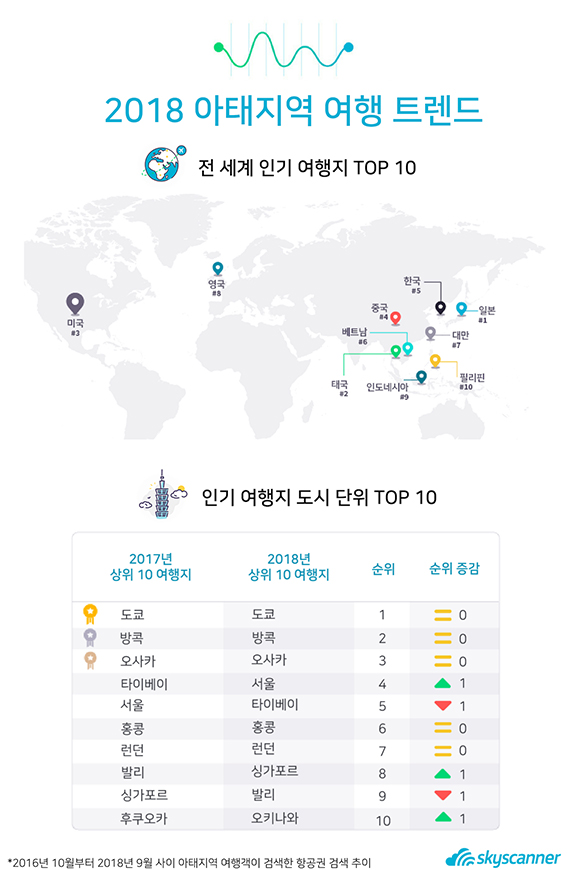 스카이스캐너 관련 트렌드 발표, 아태지역 내 한국행 항공권 검색 성장률 1위 필리핀