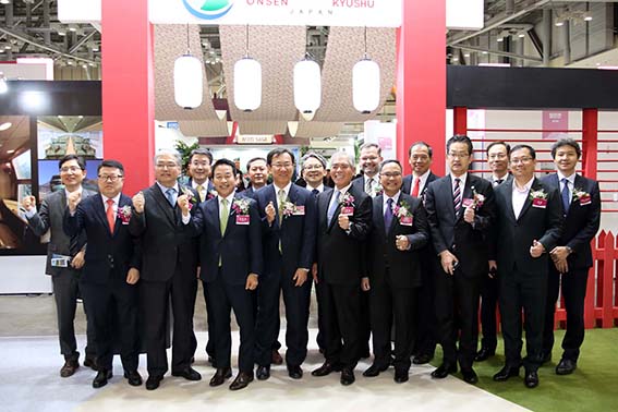 ‘2018 하나투어 여행박람회 부산’ 개막식에 참석한 여행업계 주요 인사들이 기념 사진을 촬영하고 있다.