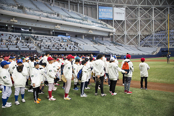 지난 4일 고척돔에서 진행된 2018 유소년 야구클리닉. <사진제공=모두투어>