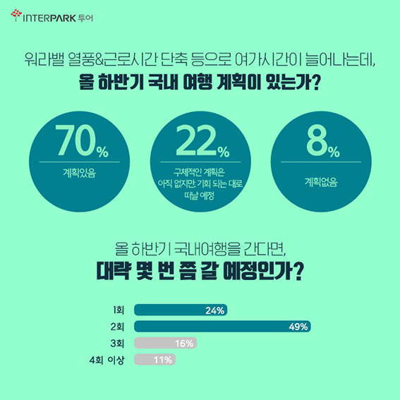 인터파크투어, ‘하반기 국내여행 트렌드’ 설문조사 결과 시기 상관 없이 수시로 떠나