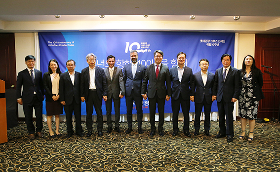 롯데관광 크루즈 전세선 운항 10주년 기념식에 참석한 관계자들.(사진 오른쪽에서 네번째 남봉현 인천항만공사 사장...[제1036호]2018-07-06 09:05