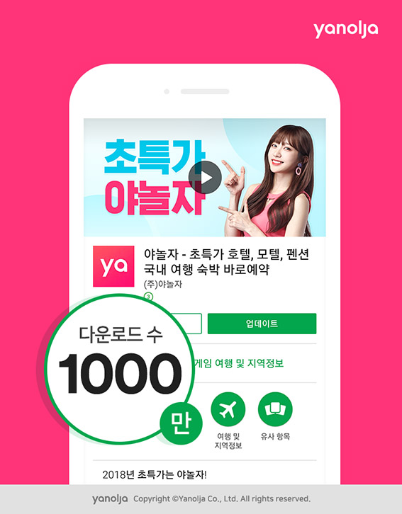 - 야놀자 앱, 누적 다운로드 1000만 건 돌파