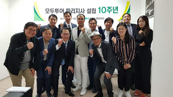 우준열 모두투어 전략기획본부장(앞줄 가운데)과 파리지사 임직원 등이 지사 설립 10주년을 맞아 브랜드 경쟁력 강...[제1035호]2018-06-29 09:25