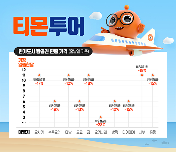 티몬투어, 130만 건 항공 예약 분석 결과 최저 구입 가능
