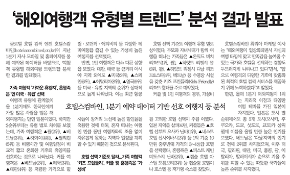 호텔스컴바인, 1분기 예약 데이터 기반 선호 여행지 등 분석