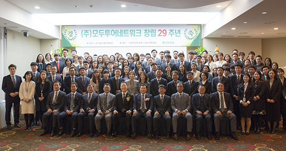 지난 9일 프레지던트호텔에서 진행된 모두투어 창립 29주년 기념식에는 우종웅 회장(앞줄 오른쪽에서 세번째)과 한...[제1021호]2018-03-16 09:34